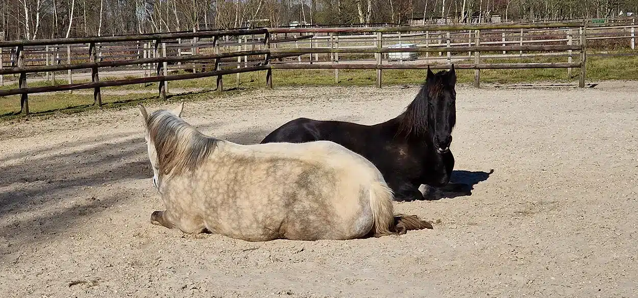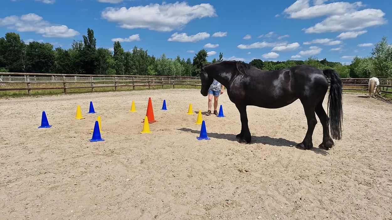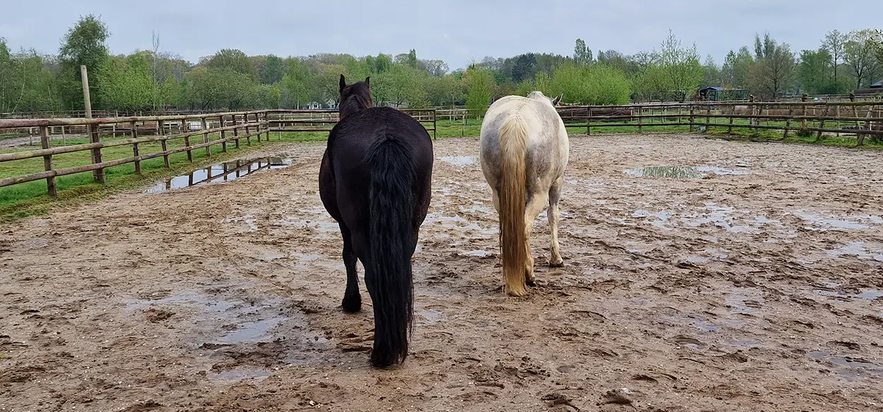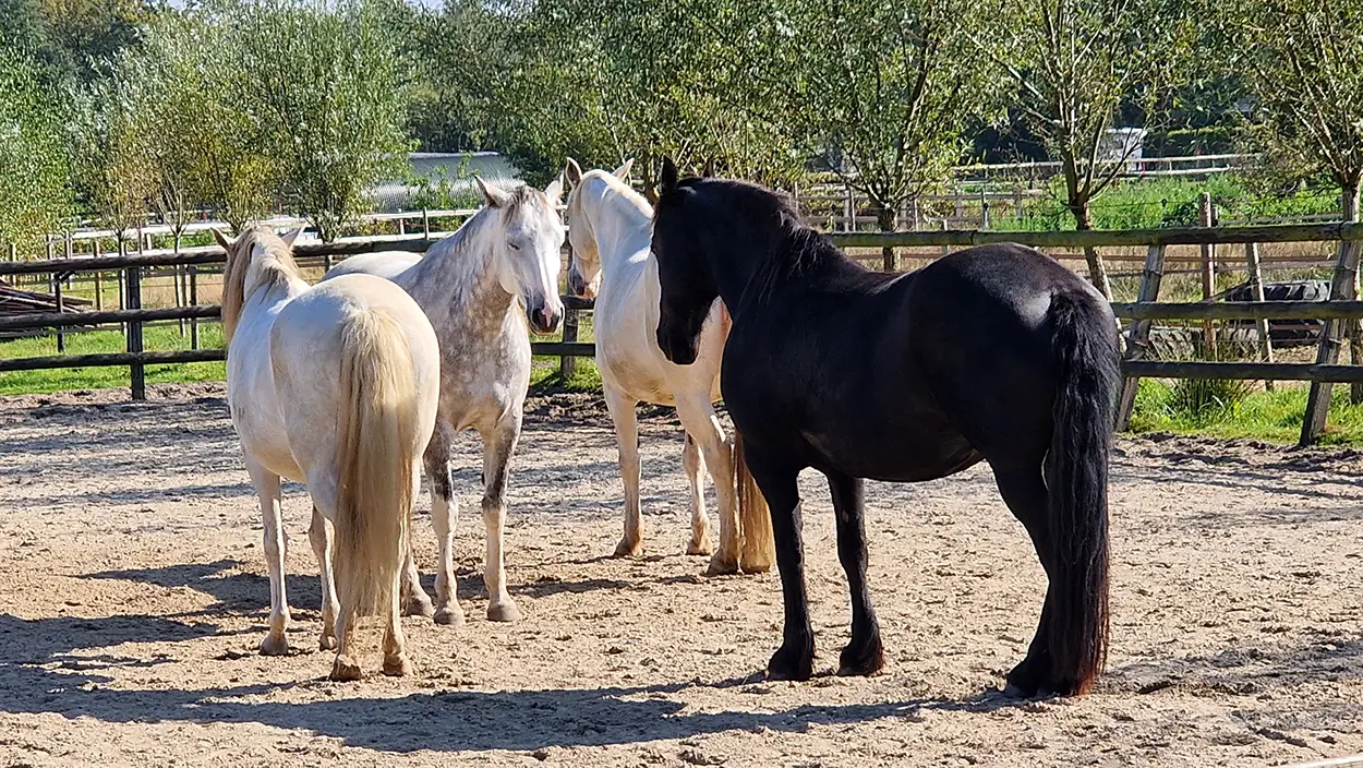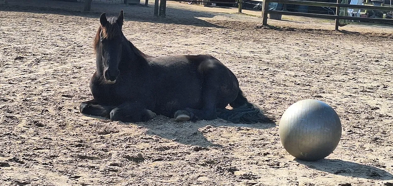 In de vroege ochtend, als de mist nog over de velden sluimert, verschijnt Noir. Geen bombarie, geen galopperende entree, alleen kalme aanwezigheid. Ze staat daar, stil en zelfverzekerd. Noir dringt zich niet op. Ze hoeft niets te bewijzen. Ze ís er gewoon, als een anker in een wereld vol prikkels.